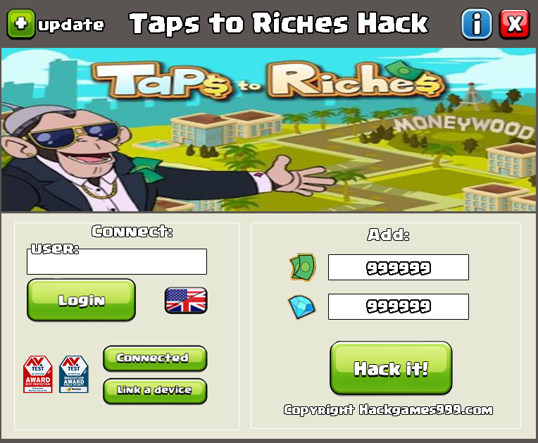 Taps to Riches Patch perfectly illustrates how much one can achieve starting from nothing. Invest more money in your city, build and improve ready-made buildings, aim for more and you will see how far you have progressed in the table of leaders. Or maybe you have already come close to one of the richest people in this game? Create a real masterpiece right in your smart phone. Use the opportunity to become the richest person in the world of Taps to Riches. Install this application on your phone absolutely for free. By the way, to install this hack, and to use it, you do not need to root your android device, or jailbreak your iOS.